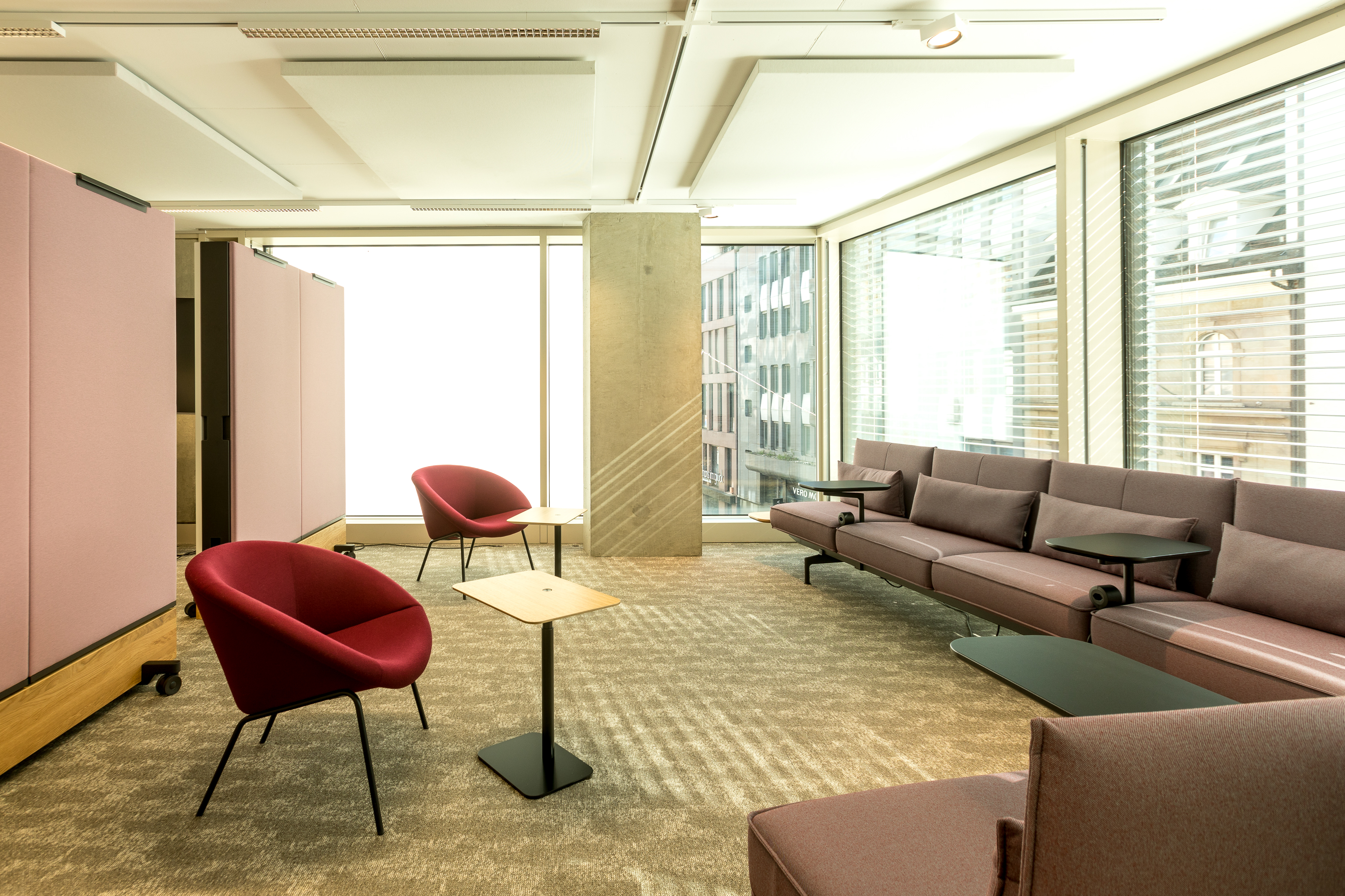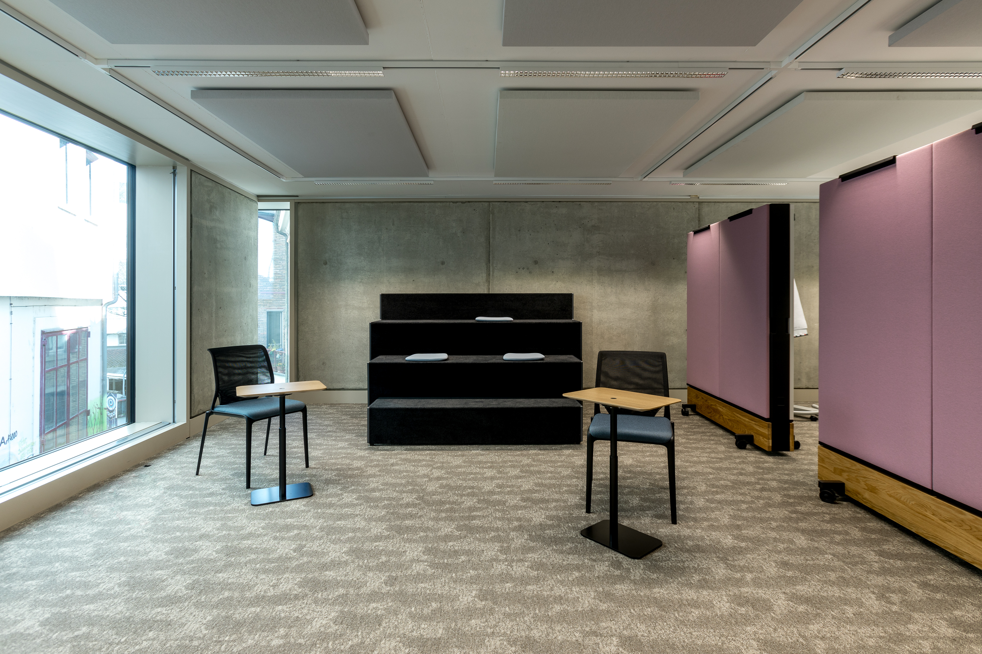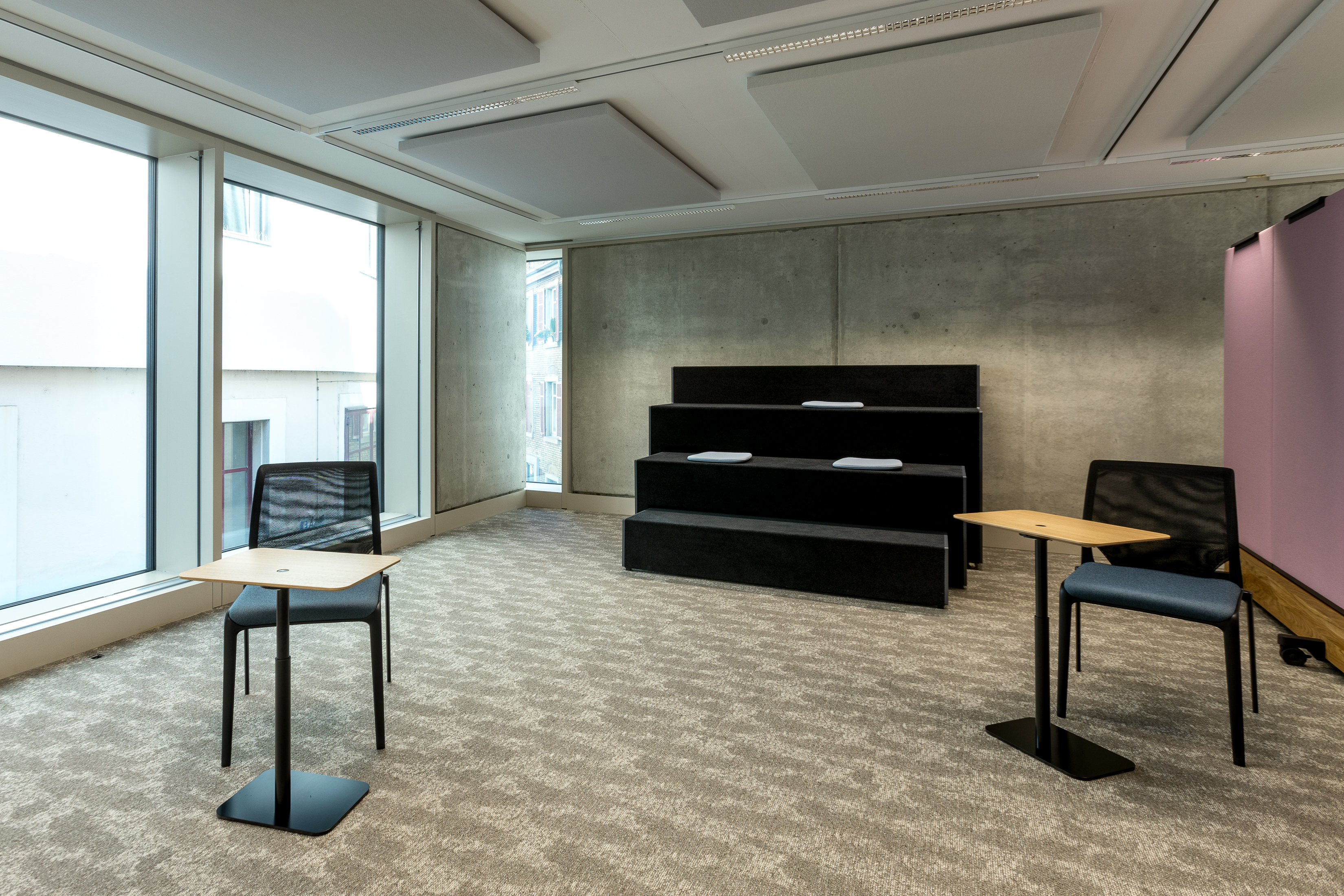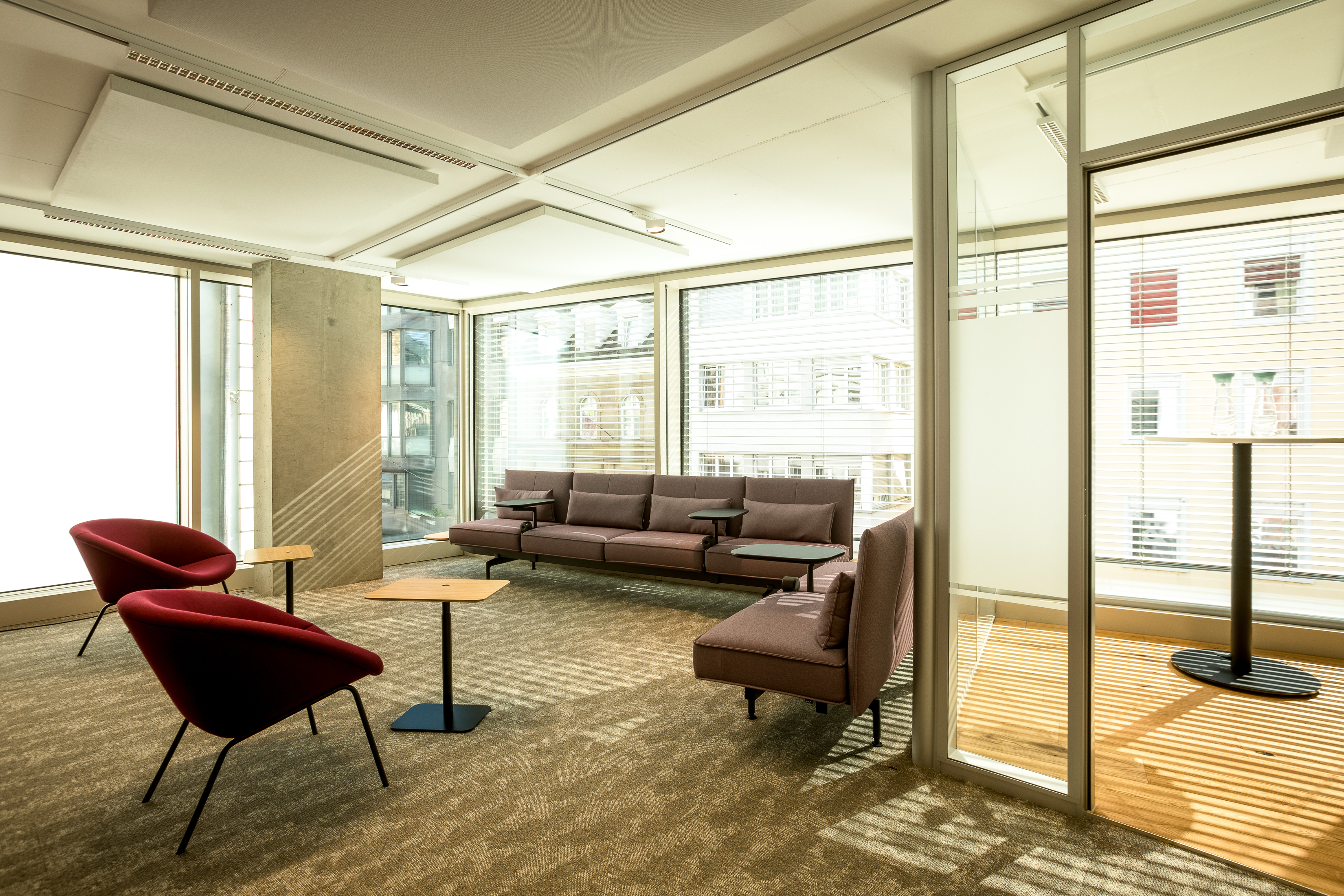 Les salles de réunion de l'IWB Citycenter à Bâle ont été réaménagées avec des dalles de moquette haut de gamme. Les dalles Condor Graphic Tiles garantissent une acoustique agréable et créent une ambiance moderne. Pour la cuisine, le choix s'est porté sur un parquet à lames larges. Le parquet allie durabilité et esthétique élégante. Un exemple réussi de revêtements de sol haut de gamme qui allient à la perfection fonctionnalité et design. Les dalles de moquette sont faciles à poser et, si nécessaire, faciles à remplacer.