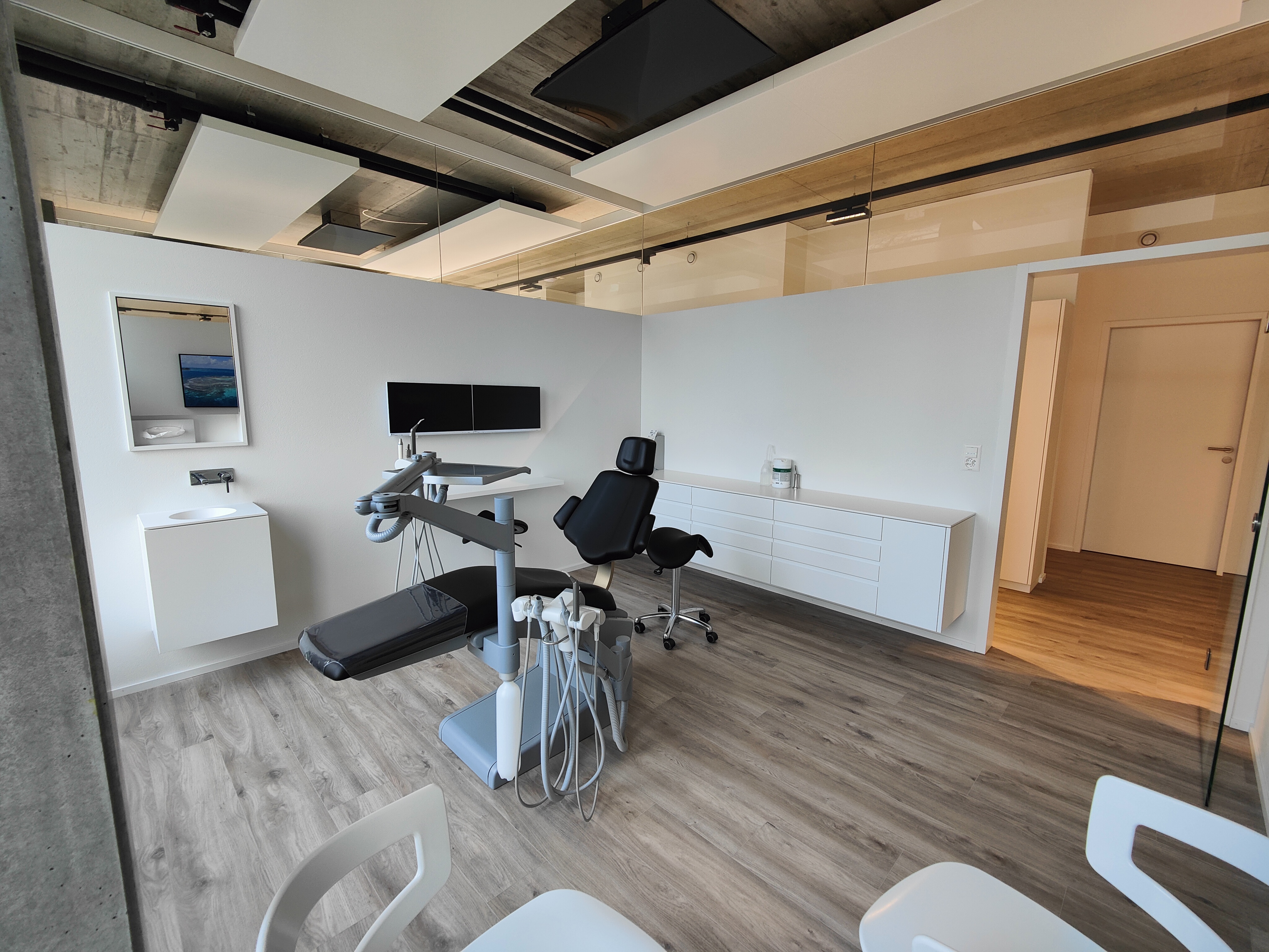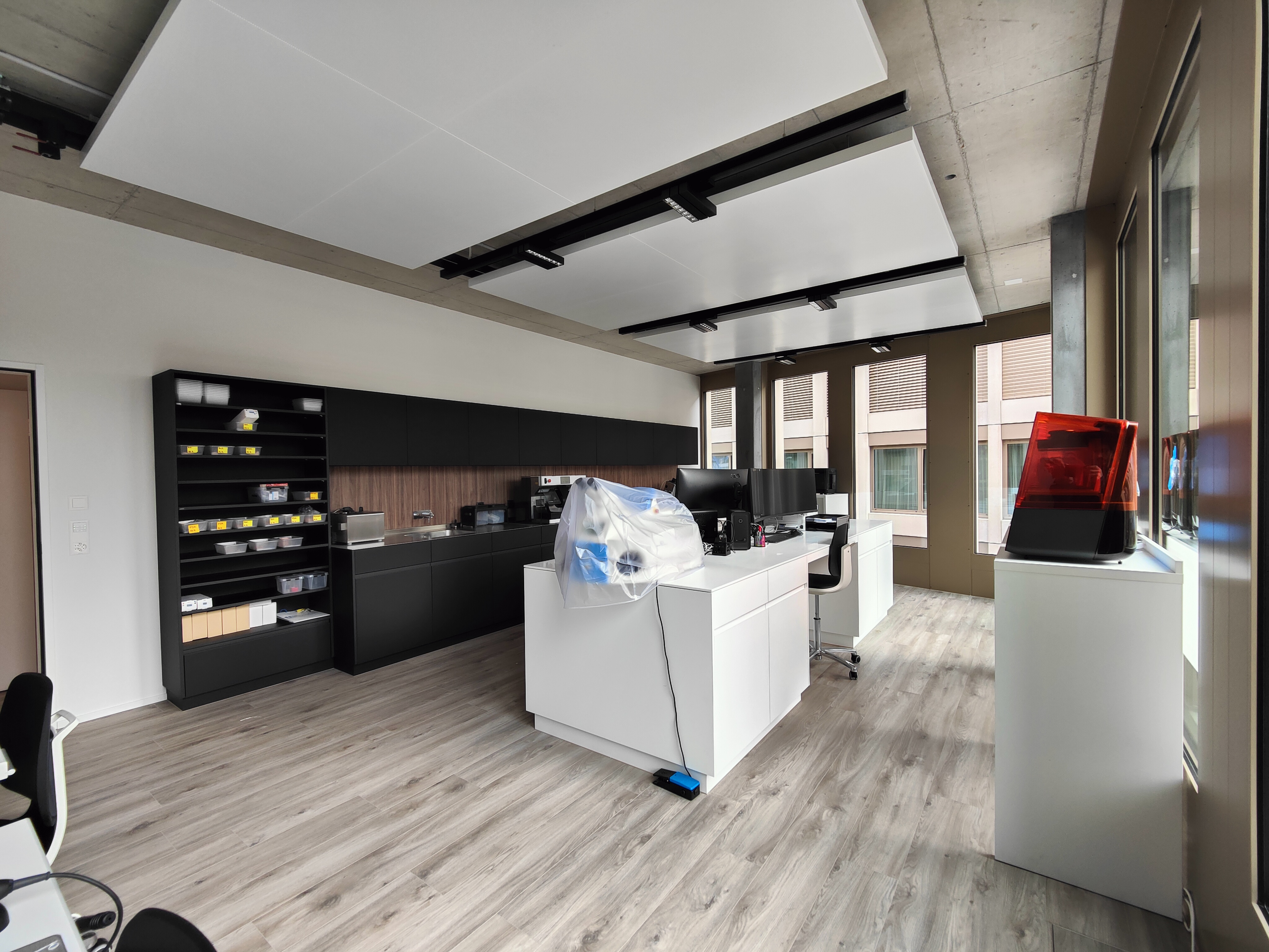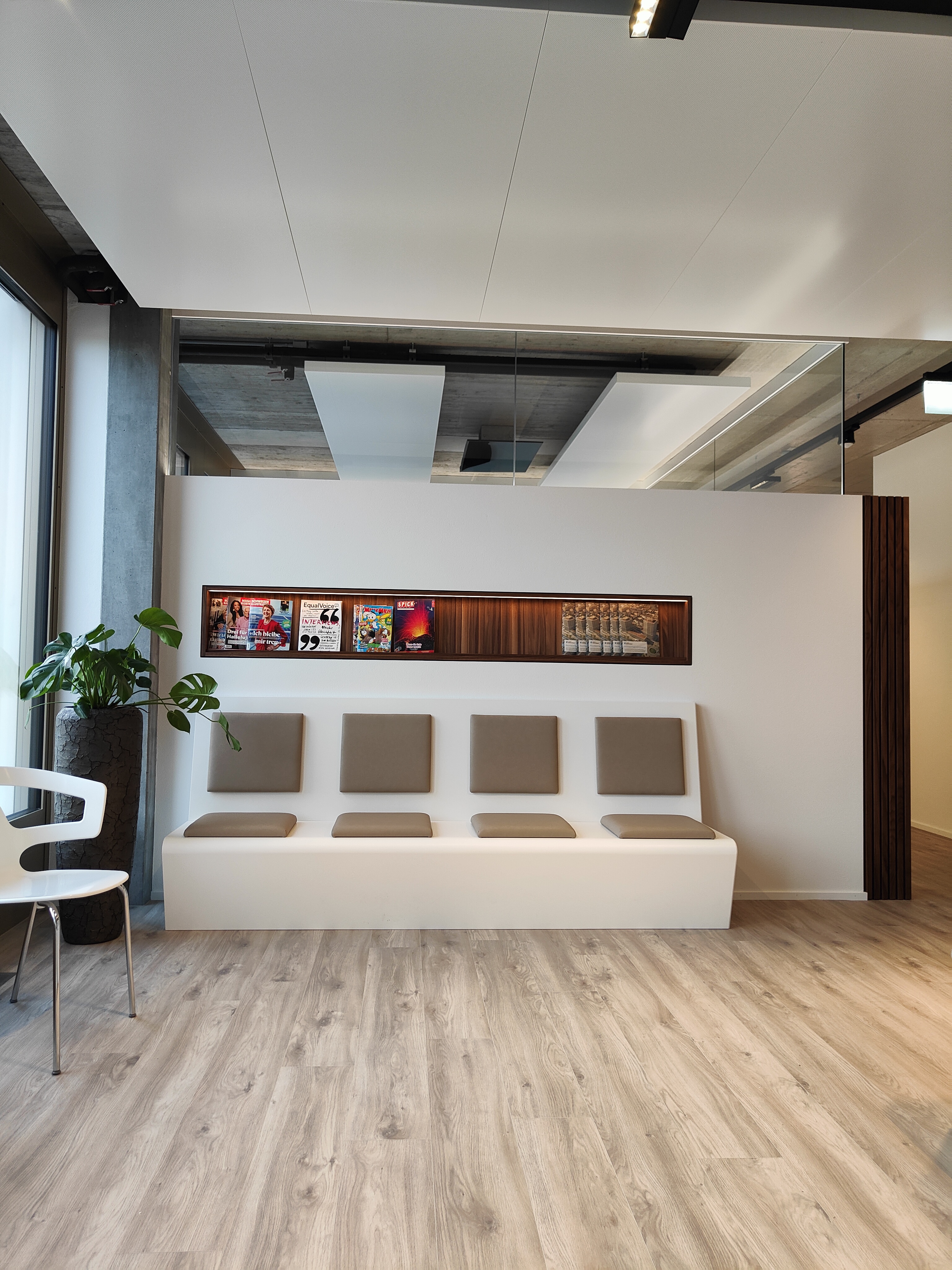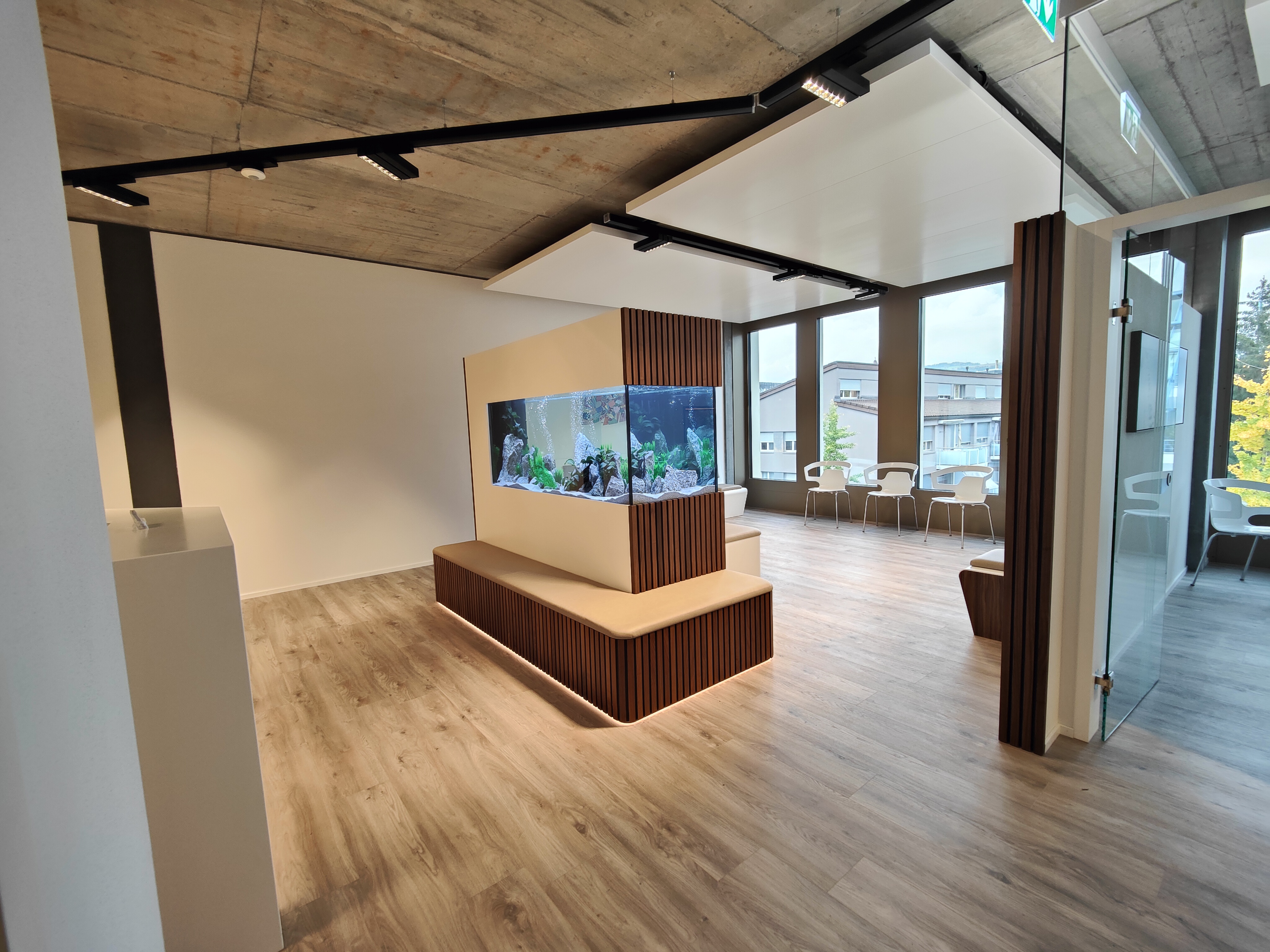 Dans ce cabinet médical de 500 m2, LayRed Sierra Oak (numéro de couleur 58239) a été posé dans toutes les zones - réception, salle d'attente, salles de soins, salles de réunion, toilettes.