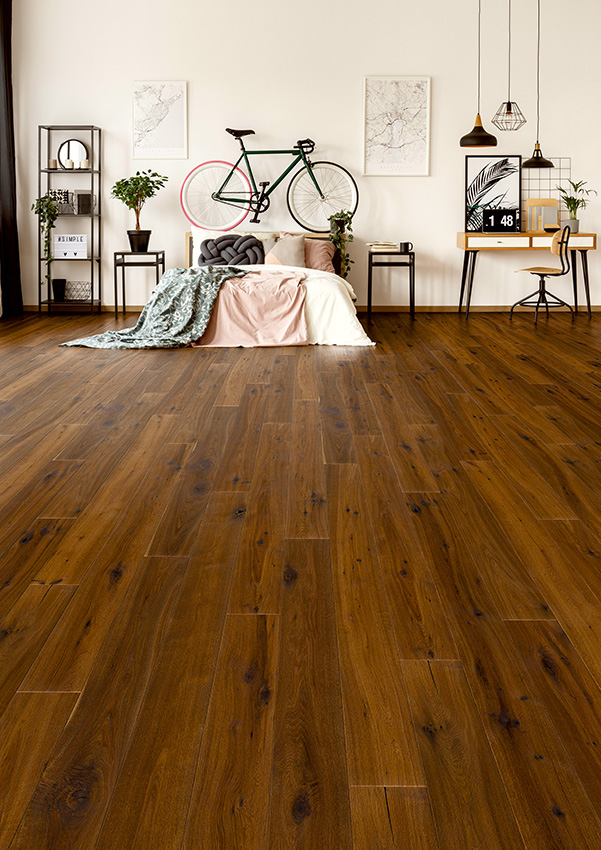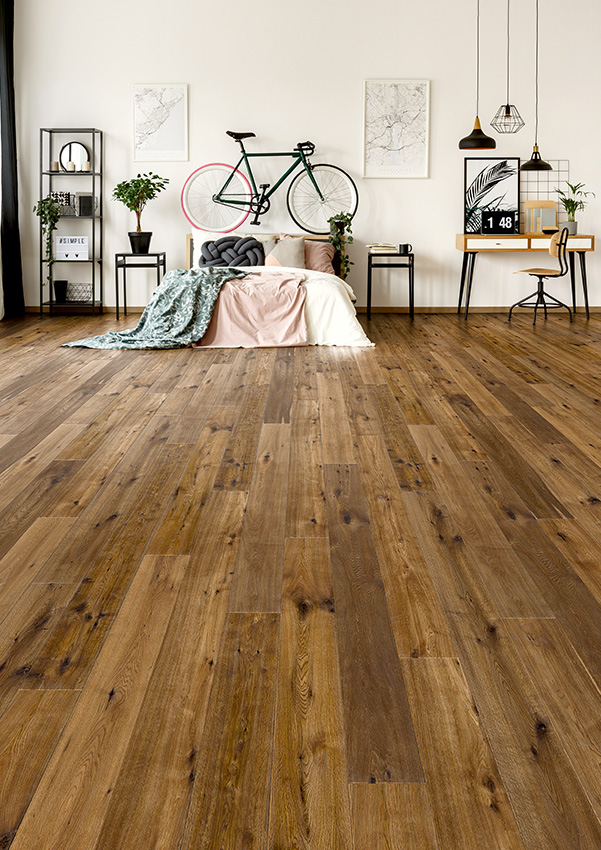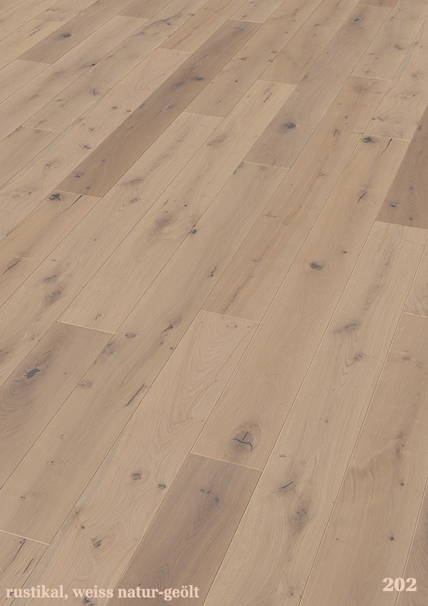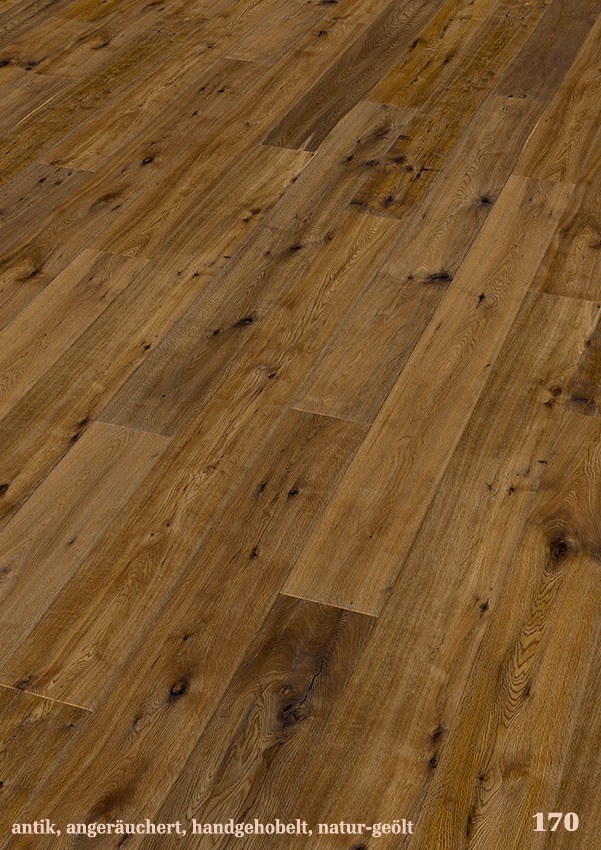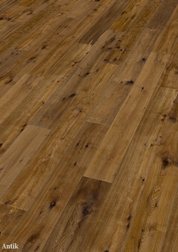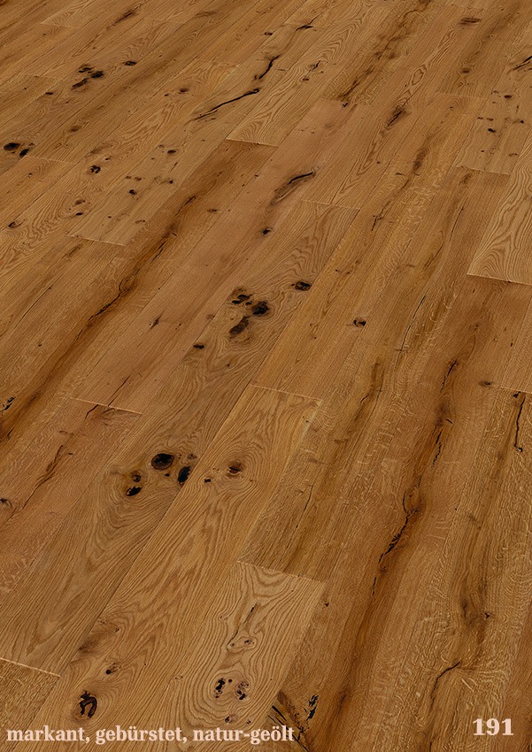 Die Landhausdielen aus europäischer Eiche sind in den Stärken 14 und 15 mm erhältlich, mit einer Nutzschicht von 3 oder 4 mm. Das Dielenformat beträgt 190 × 1900 mm.