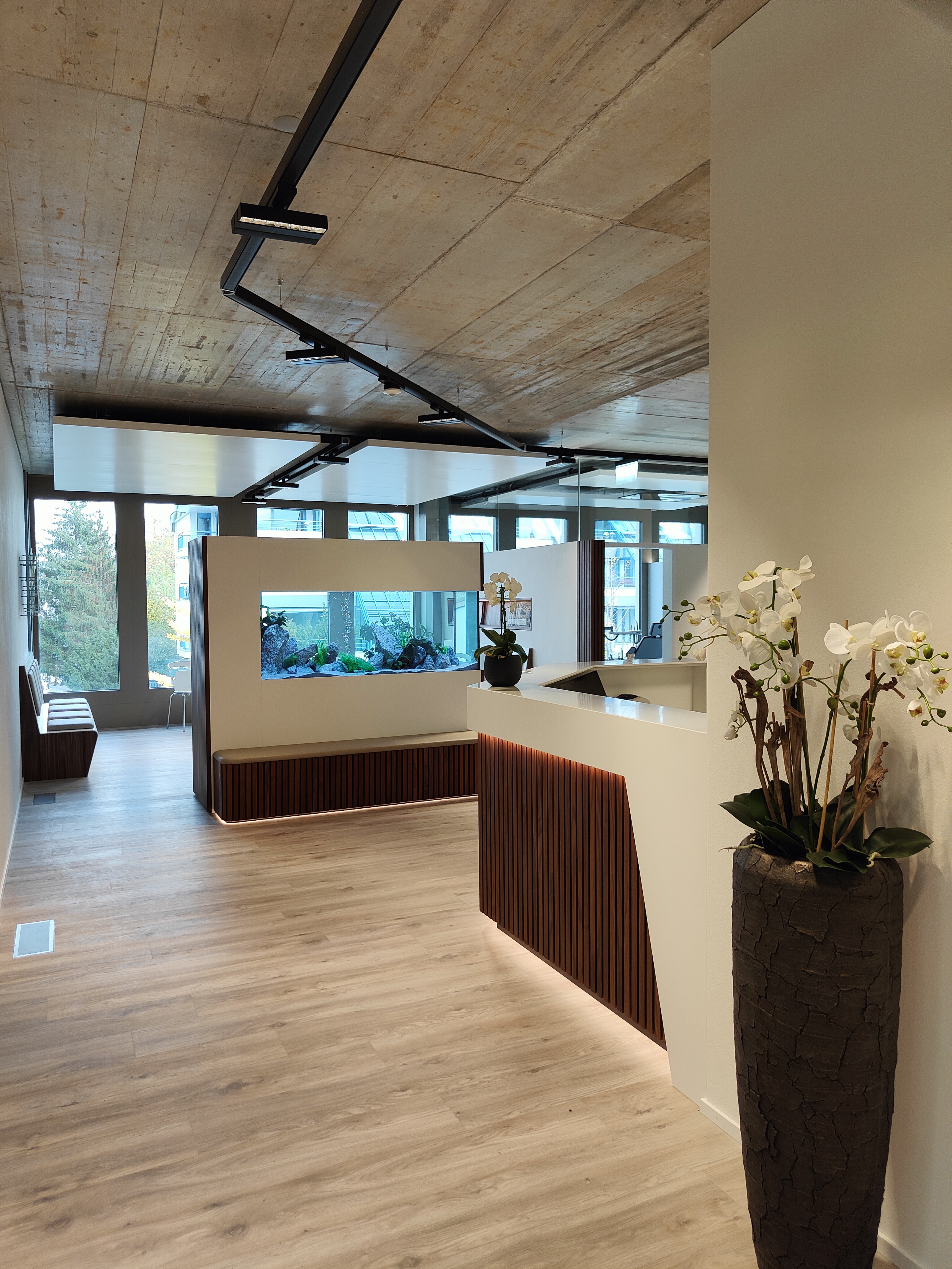 In der 500 m2-grossen Arztpraxis wurde in allen Bereiche - Empfang, Wartebereich, Behandlungszimmer, Besprechungsräume, WC - LayRed Sierra Oak (Farbnummer 58239) verlegt.